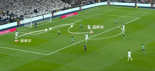 同样是罗德里戈任意球助攻队友破门,与塞维利亚的比赛中,贝林厄姆的头球是靠弹跳和身体素质力压对手,那么与贝蒂斯的这个进球,将贡萨洛在门前的跑位和摆脱能力展现得淋漓尽致。